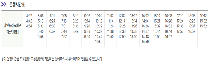 도착시간은 교통 및 기상상황 등에 따라 변경될 수 있습니다