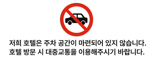 주차 안내 나인트리 바이 파르나스 서울 명동 1호점은 전용 주차장이 마련되어 있지 않아 호텔 내 주차가 불가합니다.주차가 필요하신 경우, 인근 공영주차장 또는 민간 주차장을 이용해 주시기 바랍니다.대중교통을 이용하시면 보다 편리하게 호텔을 이용하실 수 있습니다.